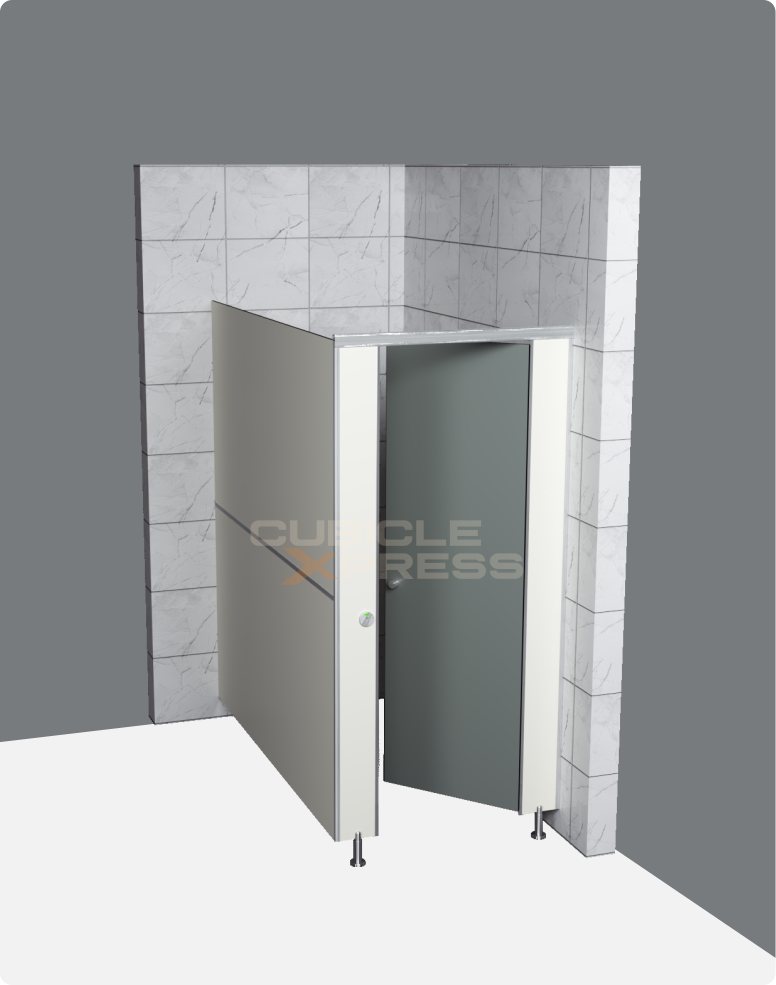 Providing toilet cubicle systems by Cubiclexpress in standard dimensions of 900mm width X 1500mm depth X 2000mm height with a door size of 600mm width X 1800mm height with 12mm thickness. The solid grade BWP HDF Panels made of high density(compactness) and added advantage of fire retardant and high dimensional stability and having density >1.050 kg/cm3, including doors, pilasters & intermediate panels, which are resistant to heat, bacteria, chemicals, scratch and impact & water immersion through permissible increase on weight will be <0.60~0.8%. Finished product will be as per approved texture, shade & drawing, detailing and developed according to IS-2046 and EN438 standards and as per fire retardant BS-476/97 standard. The toilet cubicle setup shall include necessary hardware fittings, made out of stainless steel (Grade-304 & 316), as per manufacturer’s specifications and approved by the engineer.