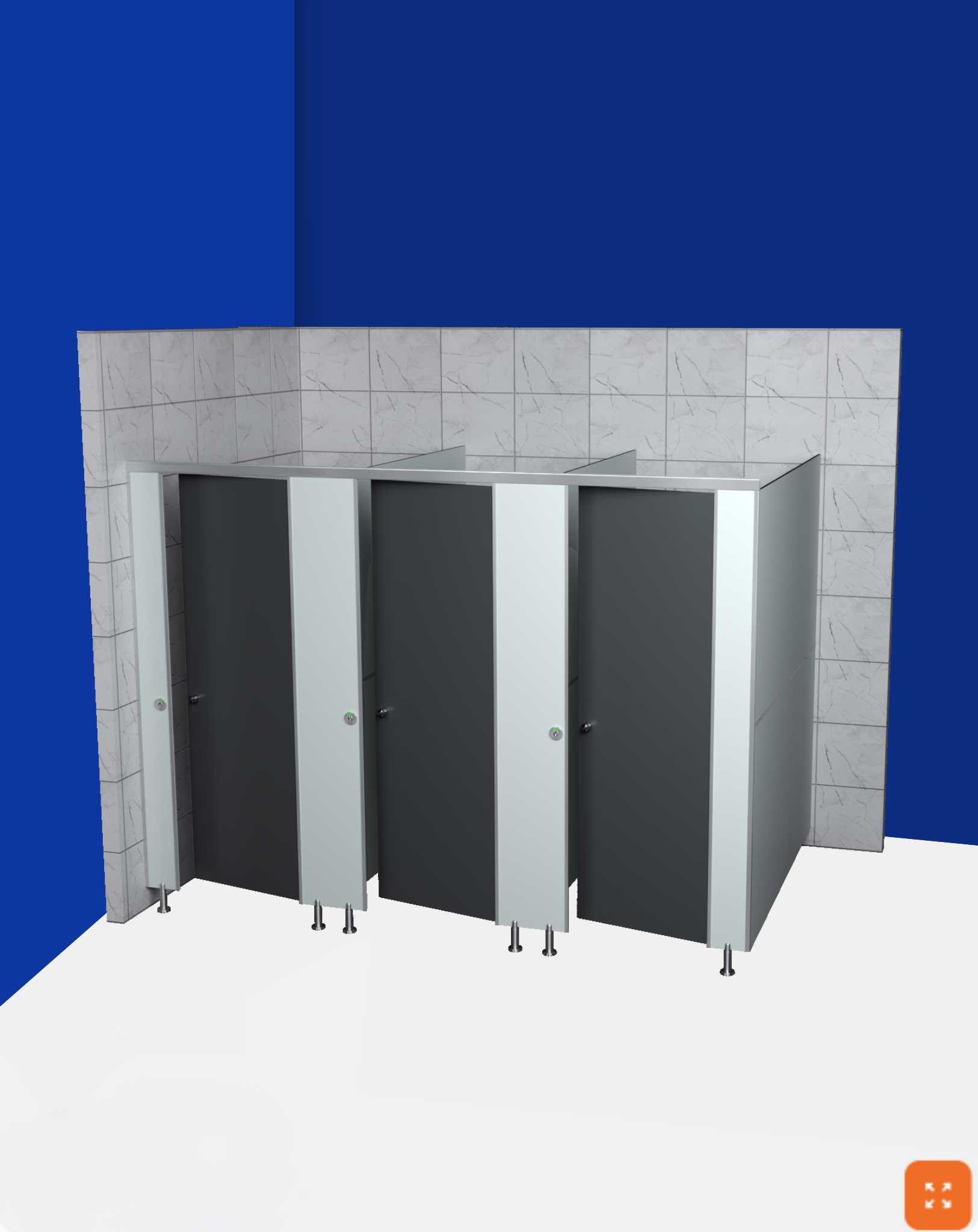 Providing and fixing toilet cubicle systems installed by Super creations in standard dimensions of 900mm width X 1500mm depth X 2000mm height with a door size of 600mm width X 1800mm height with 12mm thickness. The solid grade Compact Laminate panels made of Phenolic resins under high pressure and temperature having density >1050 kg/m3, including doors, pilasters & intermediate panels, which are resistant to heat, bacteria, chemical, scratch and impact & water immersion through permissible increase on weight will be <0.60~0.8%. Finished product will be as per approved texture, shade & drawing, detailing and developed according to IS-2046 and EN438 standards and as per fire retardant BS-476/97 standard. The product should have Green Guard Certificate. The toilet cubicle setup shall include necessary hardware fittings, made out of stainless steel (Grade-304 & 316), as per manufacturer’s specifications and approved by the engineer. The top fitting arrangement shall comprise of SS finish aluminium powder coated top rail, fixed to pilasters. In the absence of brick walls, SS finish aluminium powder coated L -channel(connected to the top rail) shall be used at the corners of the cubicle. All screws should be of stainless steel (Grade-304). All pilasters shall be supported by stainless steel (Grade-316) adjustable foot. The base of the stainless steel adjustable leg shall be anchored to the floor with a clearance height of 150mm. The intermediate panel shall be of one continuous panel without any joint. All visible edges shall be chamfered.