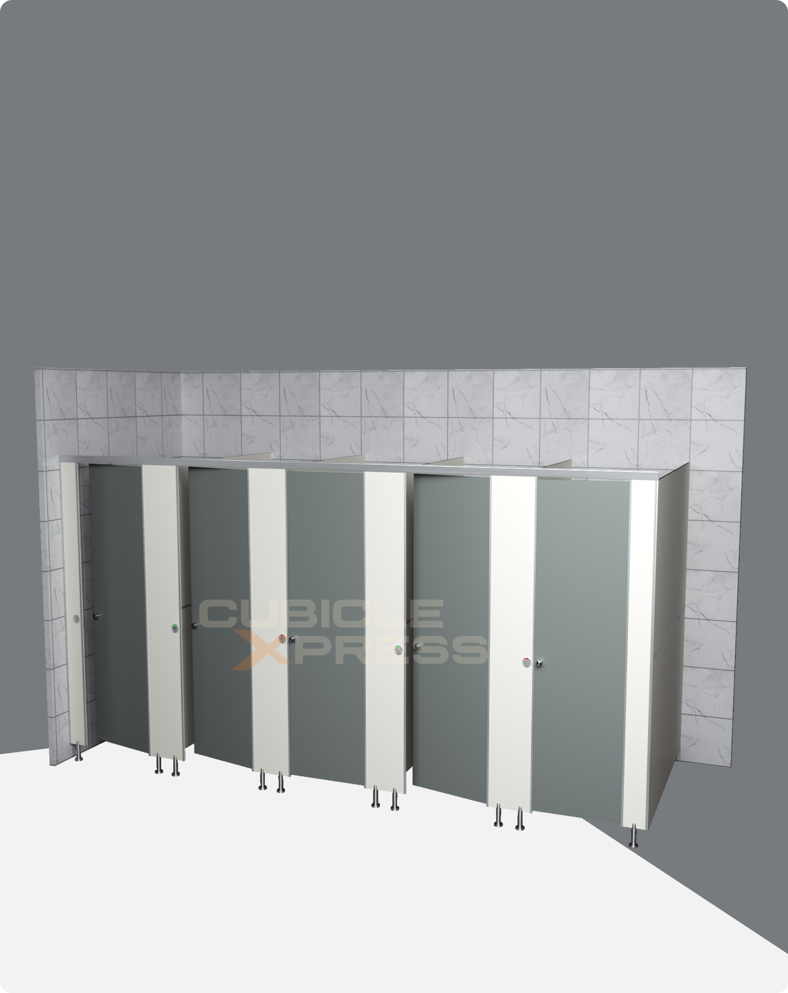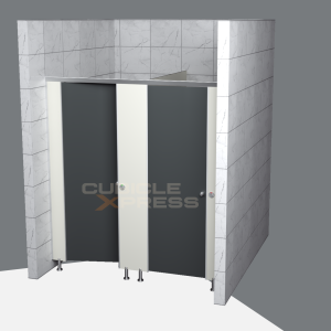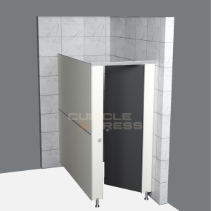 Providing and fixing toilet cubicle systems installed by Super creations in standard dimensions of 900mm width X 1500mm depth X 2000mm height with a door size of 600mm width X 1800mm height with 12mm thickness. The solid grade Compact Laminate panels made of Phenolic resins under high pressure and temperature having density >1050 kg/m3, including doors, pilasters & intermediate panels, which are resistant to heat, bacteria, chemical, scratch and impact & water immersion through permissible increase on weight will be <0.60~0.8%. Finished product will be as per approved texture, shade & drawing, detailing and developed according to IS-2046 and EN438 standards and as per fire retardant BS-476/97 standard. The product should have Green Guard Certificate. The toilet cubicle setup shall include necessary hardware fittings, made out of stainless steel (Grade-304 & 316), as per manufacturer’s specifications and approved by the engineer. The top fitting arrangement shall comprise of SS finish aluminium powder coated top rail, fixed to pilasters. In the absence of brick walls, SS finish aluminium powder coated L -channel(connected to the top rail) shall be used at the corners of the cubicle. All screws should be of stainless steel (Grade-304). All pilasters shall be supported by stainless steel (Grade-316) adjustable foot. The base of the stainless steel adjustable leg shall be anchored to the floor with a clearance height of 150mm. The intermediate panel shall be of one continuous panel without any joint. All visible edges shall be chamfered.