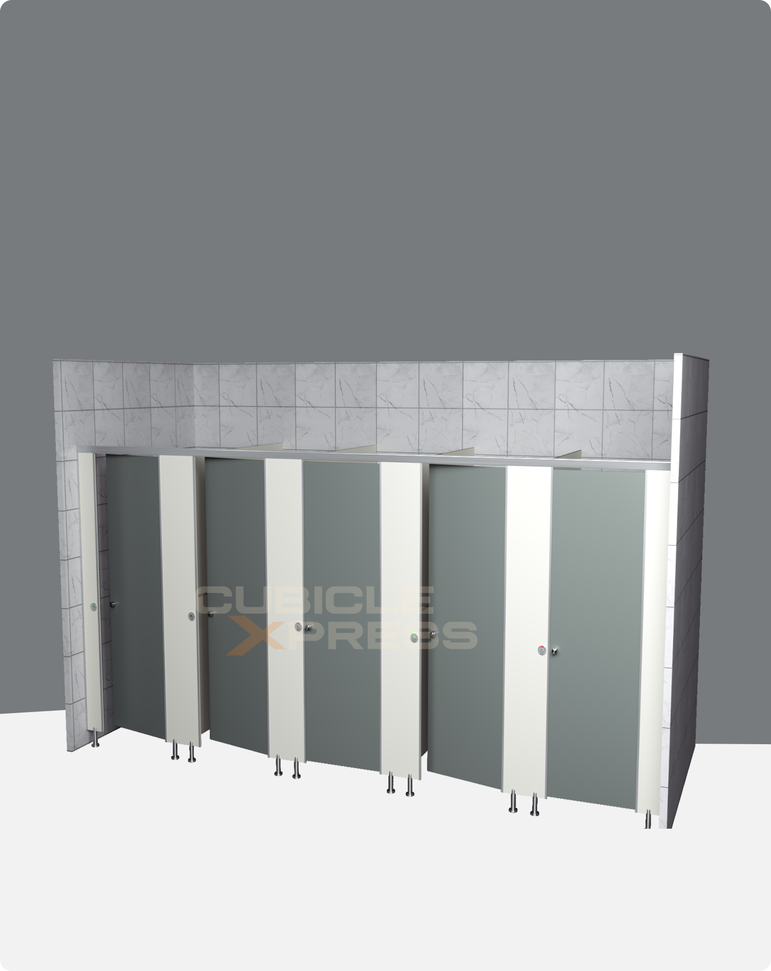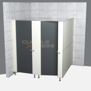 Providing and fixing toilet cubicle systems installed by Cubiclexpress in standard dimensions of 900mm width X 1500mm depth X 2000mm height with a door size of 600mm width X 1800mm height with 12mm thickness. The solid grade Compact Laminate panels made of Phenolic resins under high pressure and temperature having density >1050 kg/m3, including doors, pilasters & intermediate panels, which are resistant to heat, bacteria, chemical, scratch and impact & water immersion through permissible increase on weight will be <0.60~0.8%. Finished product will be as per approved texture, shade & drawing, detailing and developed according to IS-2046 and EN438 standards and as per fire retardant BS-476/97 standard. The product should have Green Guard Certificate. The toilet cubicle setup shall include necessary hardware fittings, made out of stainless steel (Grade-304 & 316), as per manufacturer’s specifications and approved by the engineer.